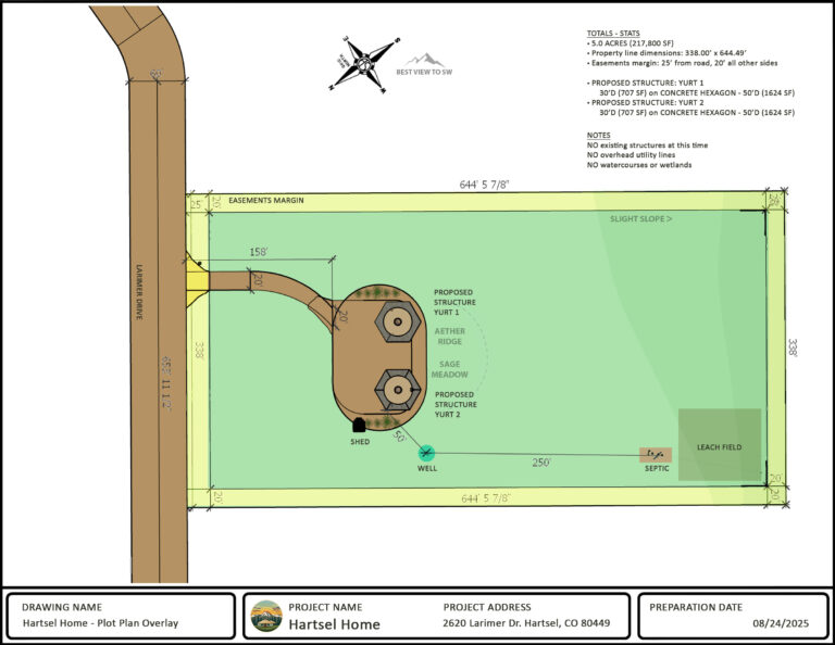 Hartsel Home project features two 30-foot-diameter yurts. They are named Sage Meadow and Aether Ridge for ease of reference and, of course, personality.