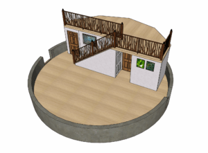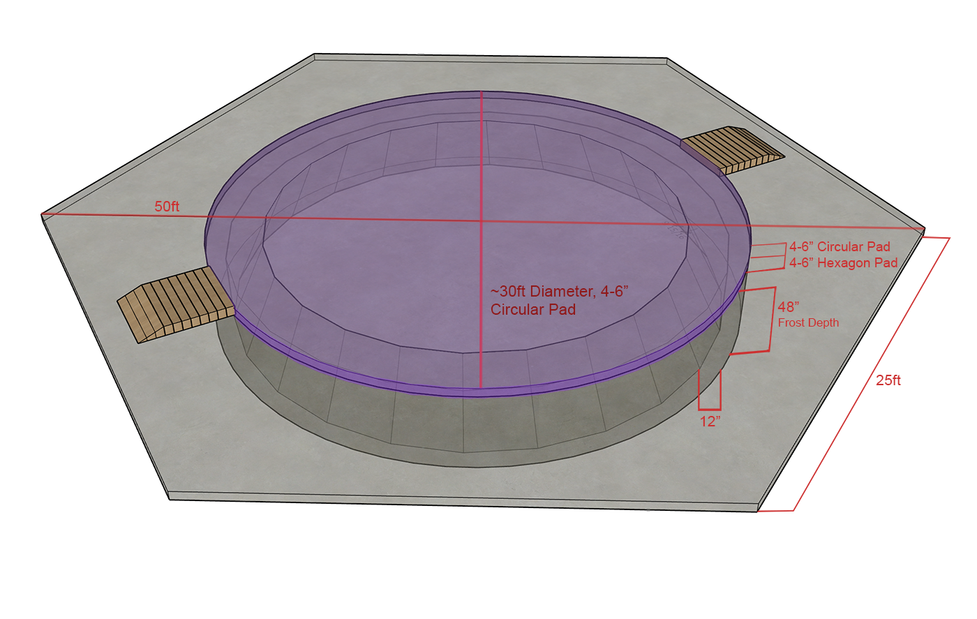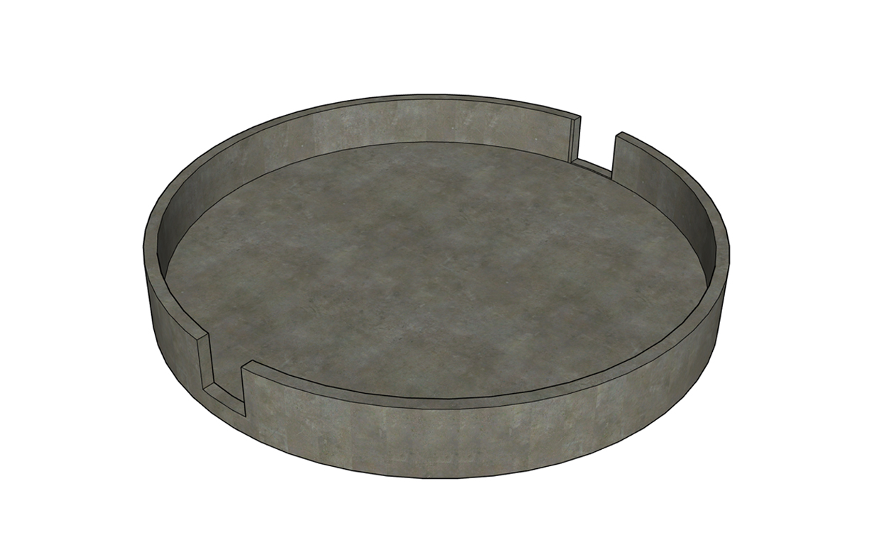 - Extra-Height Concrete Ring. Frame sits on this ring, adding 3′ to overall height of structure. Modified door kits.