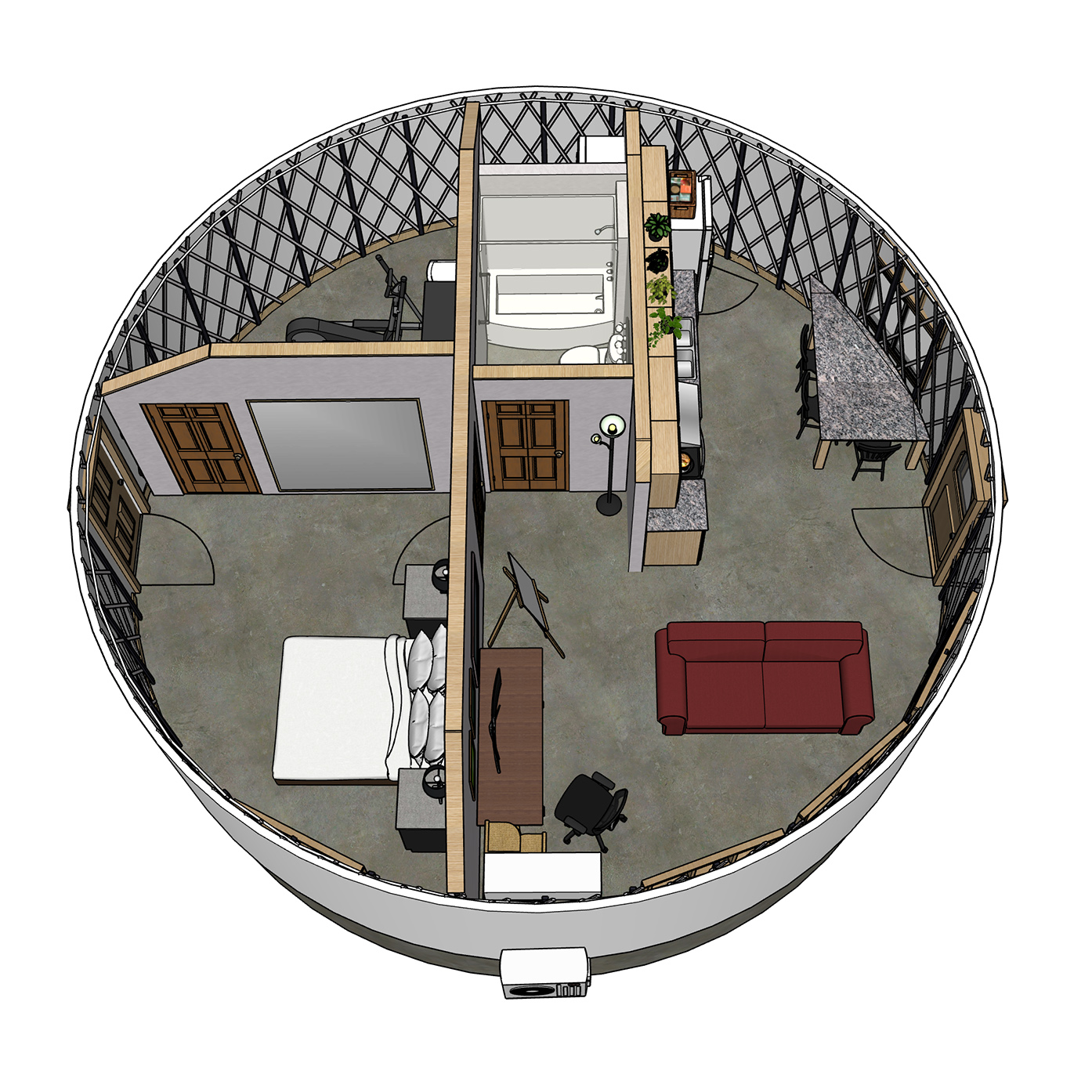 Originally developed in Central Asia (Mongolia) and used by nomadic people, yurts are designed to be both sturdy and highly portable. Today, yurts are often built as permanent dwellings with contemporary amenities while retaining their traditional charm. Their expandable nature allows for the addition of multiple interconnected yurts, offering flexible building solutions.