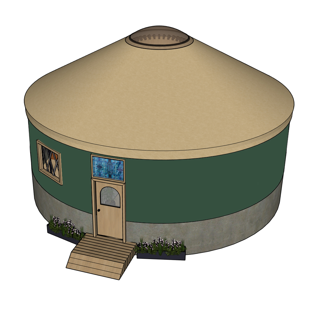 Description: 30′ Colorado Yurt w/ Wind & Snow Kit. Tan Roof & Sage Walls. 2 Standard Doors, 3 Fabric Windows, Roof & Wall Insulation, Bronze Dome with Dome Lifter, Stove Pipe Outlet, and Dome Bug Net